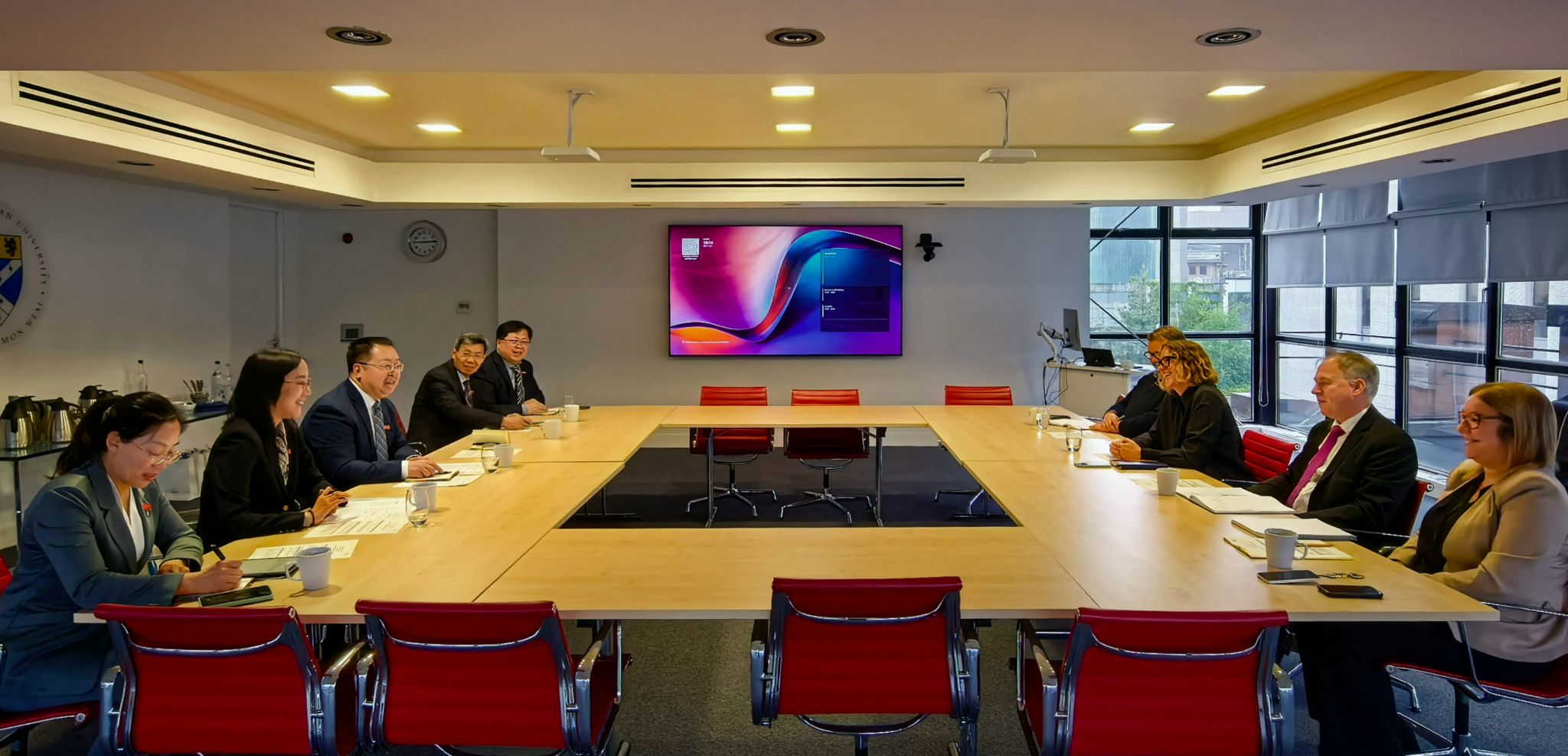 在格拉斯哥加利多尼亚大学,代表团与副校长丹·安德森(Dawn Anderson)女士及相关学院负责人进行会谈,双方围绕中外合作办学机构管理架构、师资队伍、人才培养、机构运营等细节深入交换意见,并制定了下一步行动计划。